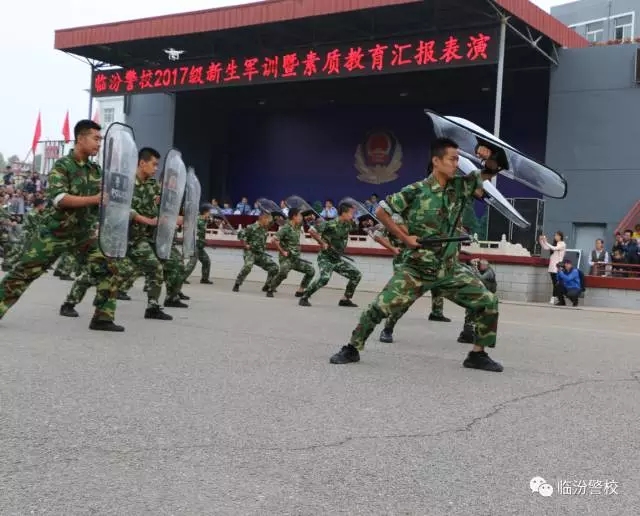 军事科目汇报表演将此次军训汇报大会推向了高潮,赢得了阵阵掌声与喝彩。警棍盾牌术、应急棍术、擒敌拳术、女子防身术等,各科目轮流亮相,以整齐的动作、如虹的气势震撼全场。